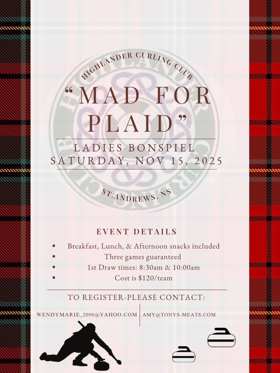 The Highlander Curling Club invites you to register for the 2025-2026 season using our  Highlander Registration Form. Whether you are new to the club or have already indicated your return to your respective League Chairs, we ask that you complete the form. League Chairs will reach out to anyone not on their list and will share more details with you on the upcoming season!
